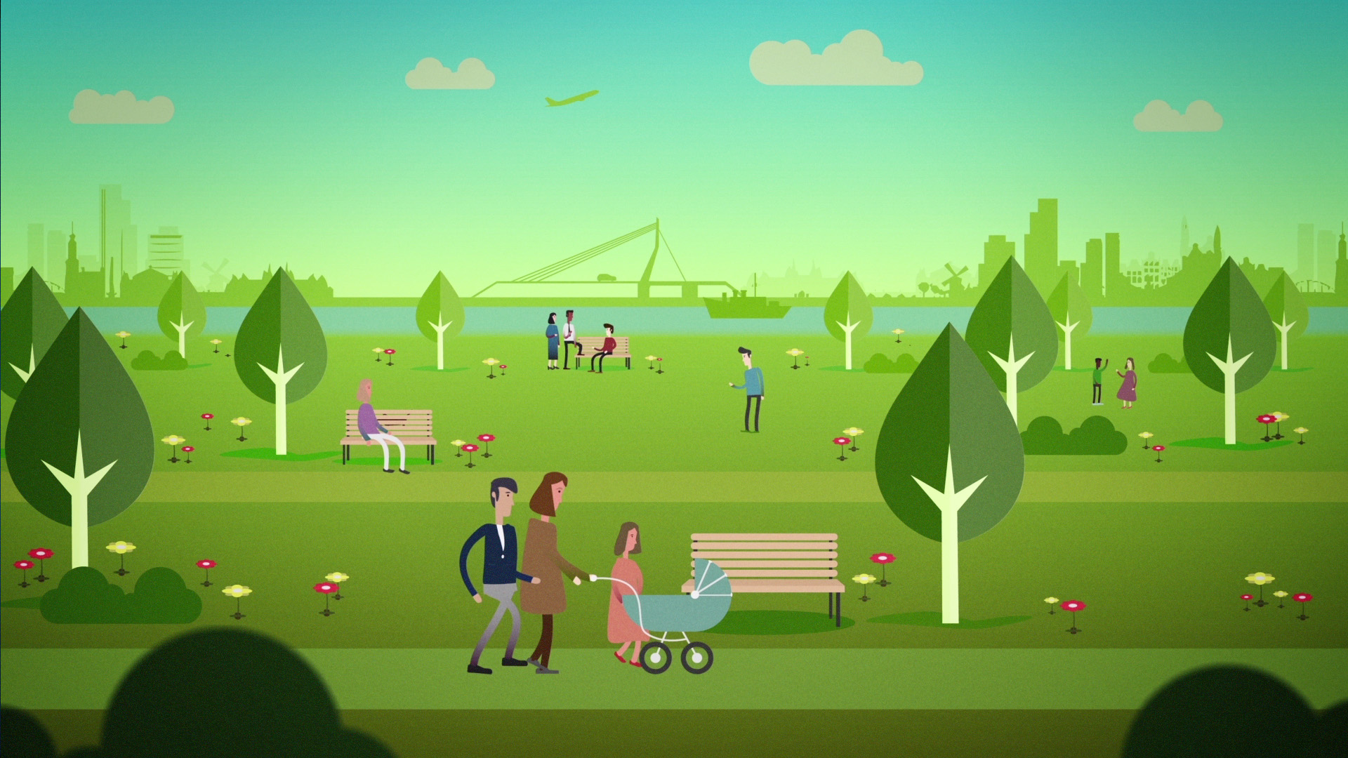 The ‘Orange Foundation’ (Oranje Fonds) is a dutch organisation that reinforces the social side of society. For the annual report of 2016, so called ‘Meedoen op Maat’, they wanted a flatdesign/2d animation informing about the orange foundation and explaining viewers what they do and what their background behind the foundation is. The design is made in a minimalistic and easy rigging way to create simple movements. The flow in the animation is playfull with side movements, zoom ins and outs and colorfull animations wipes. It started with designing the characters, as most important it contained our king and queen of the Netherlands, and after that the more architectual side. What the Orange Foundation wants to achieve in social side of our society has been put in this animation. Helping eachother through many ways and have a happy place to live everywhere in the Netherlands.